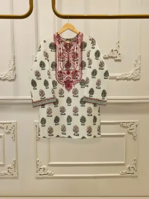 Elevate your summer wardrobe with this beautifully crafted cream lawn shirt, featuring intricate Chikan Kari work on the sleeves and daman. Designed for timeless elegance, this piece blends breathable lawn fabric with traditional craftsmanship, perfect for festive occasions or casual sophistication. Pair it with pant for a complete look.