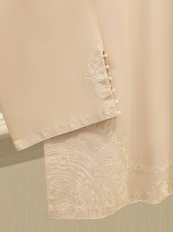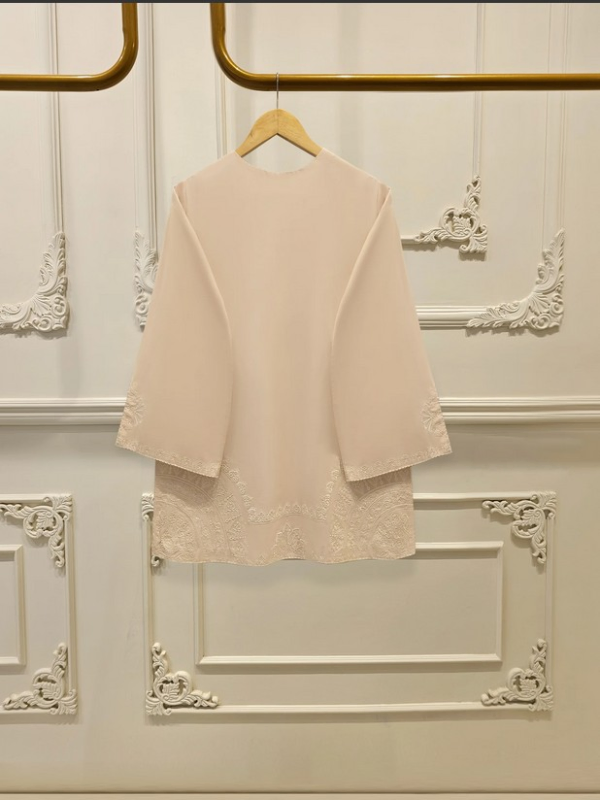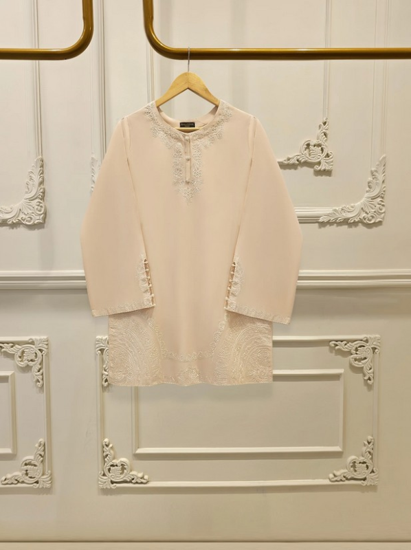Elevate your summer wardrobe with this beautifully crafted beige lawn shirt, featuring intricate Chikan Kari work on the sleeves and daman. Designed for timeless elegance, this piece blends breathable lawn fabric with traditional craftsmanship, perfect for festive occasions or casual sophistication. Pair it with pants for a complete look.