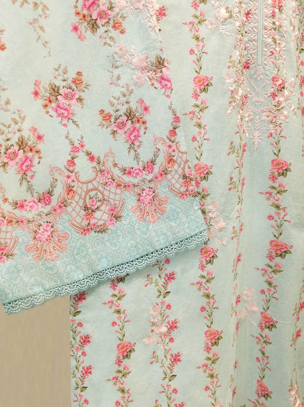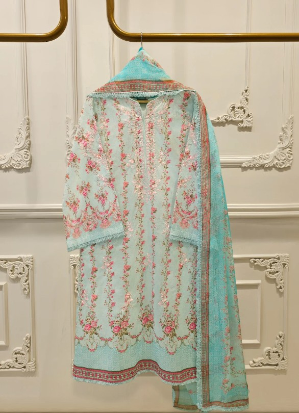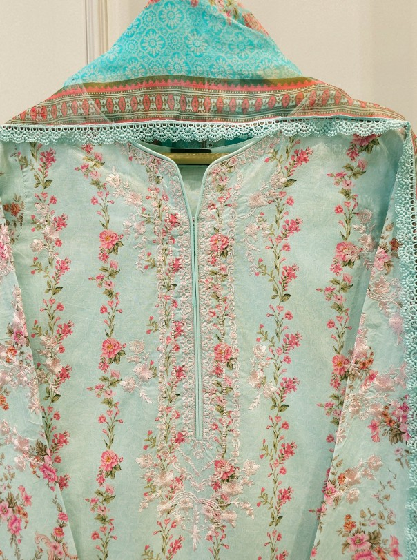 Elevate your summer wardrobe with this beautifully crafted ferozi lawn shirt, featuring intricate Chikan Kari work on the sleeves and daman. Designed for timeless elegance, this piece blends breathable lawn fabric with traditional craftsmanship, perfect for festive occasions or casual sophistication. Pair it with pants for a complete look.