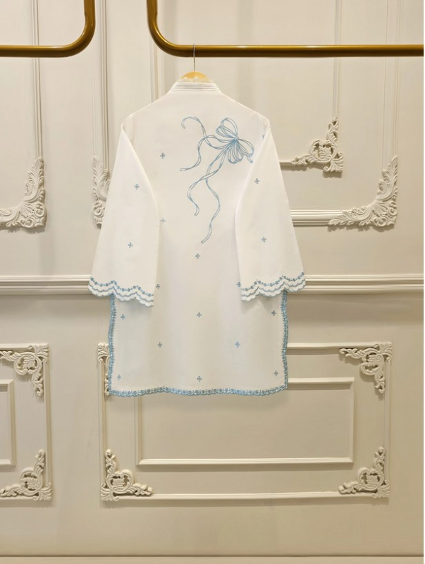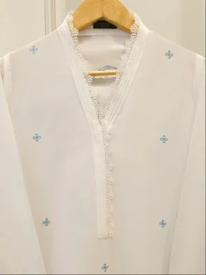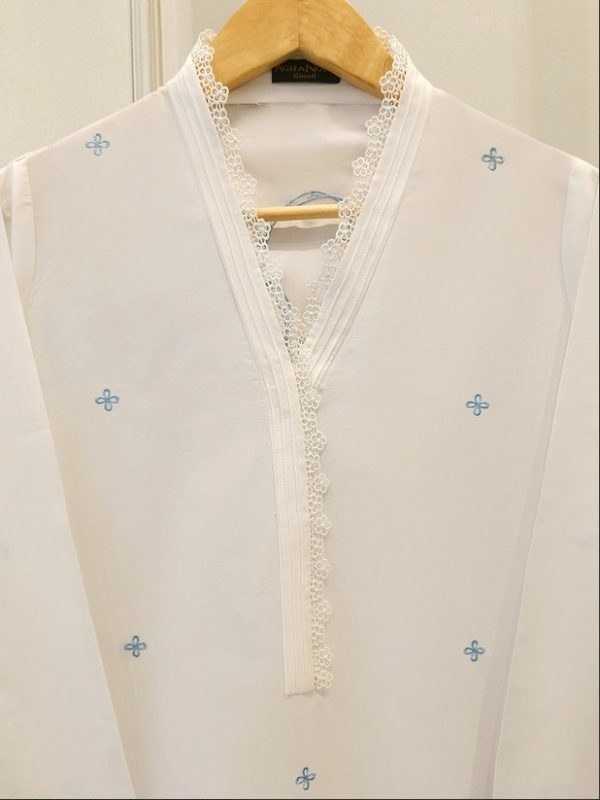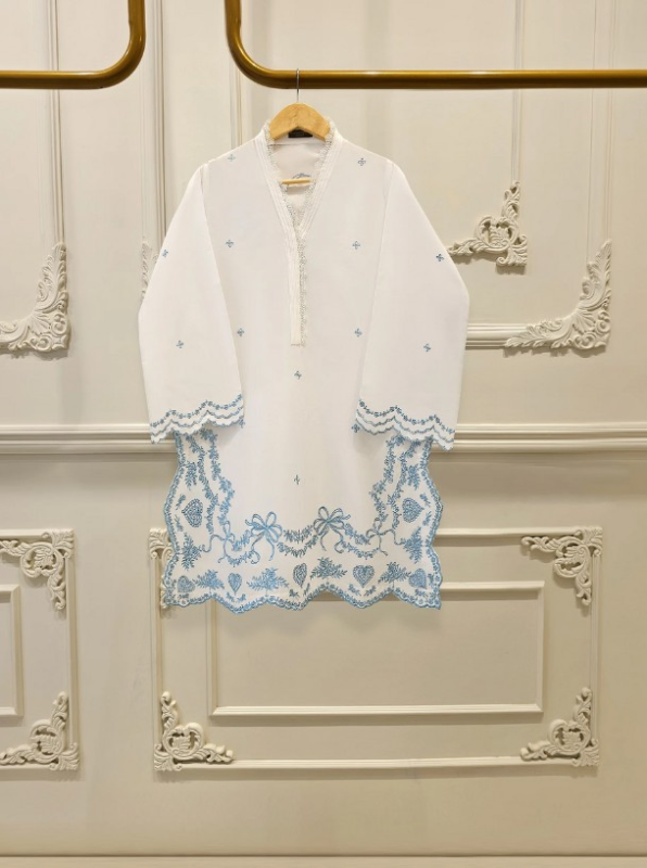 Elevate your summer wardrobe with this beautifully crafted off white lawn shirt, featuring intricate Chikan Kari work on the sleeves and daman. Designed for timeless elegance, this piece blends breathable lawn fabric with traditional craftsmanship, perfect for festive occasions or casual sophistication. Pair it with pants for a complete look.