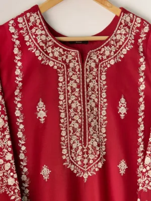 2 Piece- Pure Silk Net Embroidered Suit S110681