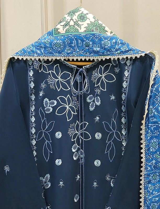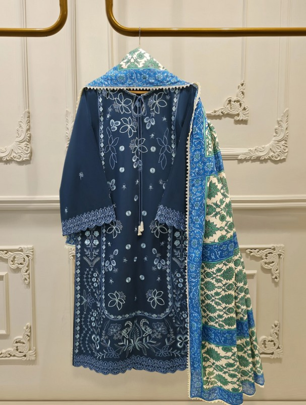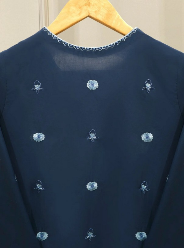Elevate your summer wardrobe with this beautifully crafted blue lawn shirt, featuring intricate Chikan Kari work on the sleeves and daman. Designed for timeless elegance, this piece blends breathable lawn fabric with traditional craftsmanship, perfect for festive occasions or casual sophistication. Pair it with pants for a complete look.