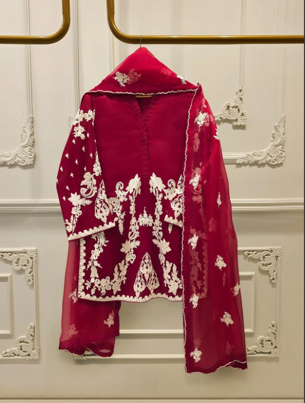 Introducing our elegant embroidered cotton net shirt with pants a perfect choice for those who appreciate intricate detailing and graceful style. Crafted from high-quality cotton net fabric, this shirt offers a lightweight and luxurious feel, allowing you to feel comfortable and chic throughout the day. The set comes with a matching pant which enhances the overall look and adds a touch of finesse to your outfit.