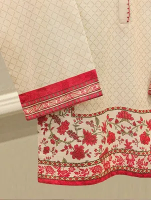 Beige printed khaddar suit features a rich, traditional design on a warm, textured fabric ideal for cooler weather. The intricate prints add a touch of elegance, while the soft yet durable khaddar material ensures comfort and style for everyday wear or casual gatherings. Perfect for autumn and winter seasons.