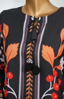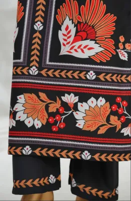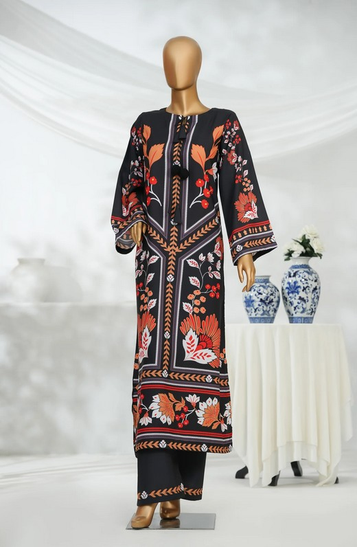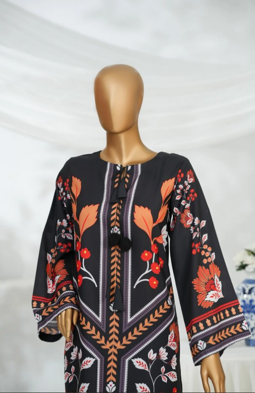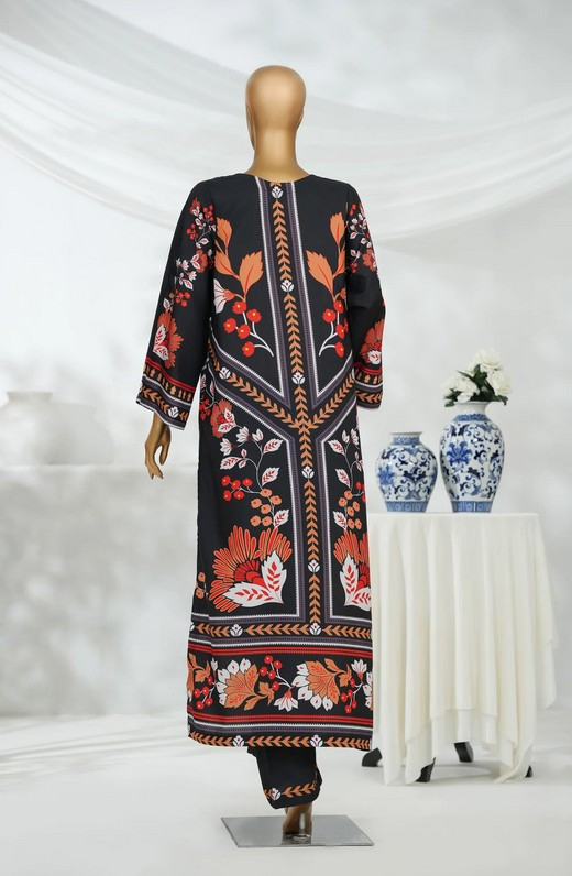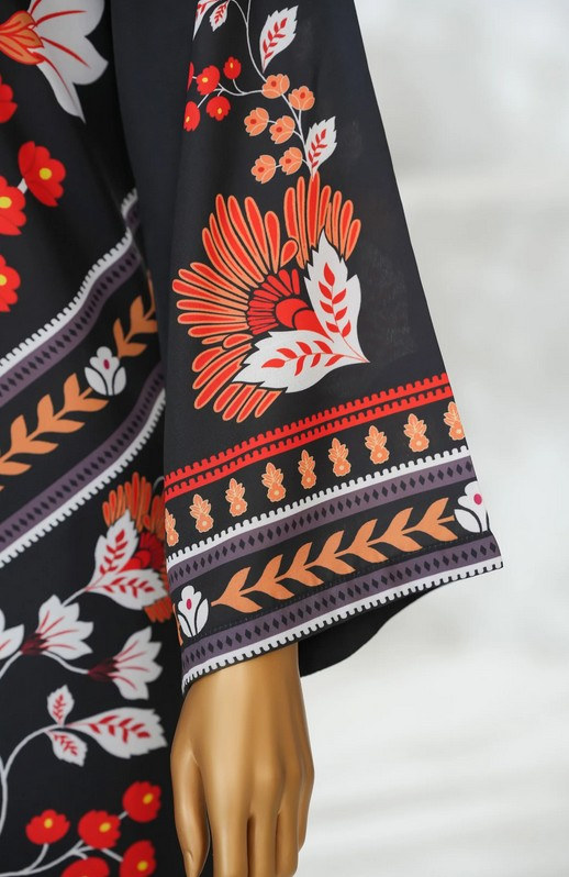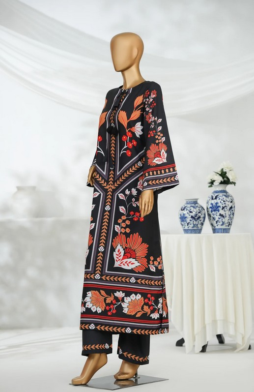 Amna Khadija Digital Printed Poly Swiss Cambric Stitched 2 Piece Suit - AKR-01 - AM25RTHM - Black - Summer Collection