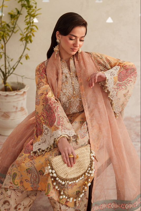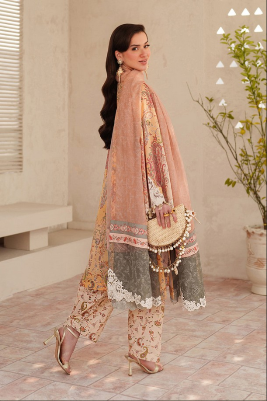 Elevate your wardrobe with this sophisticated lawn ensemble featuring digital printed front and back panels paired with coordinating trousers. The design showcases intricate embroidered organza detailing on the neckline patch and sleeve borders, adding refined elegance to every wear. A matching digital printed cotton net dupatta completes the look, with its own embroidered organza border for cohesive sophistication. Perfect for both casual gatherings and formal occasions, this three-piece set combines traditional craftsmanship with contemporary design sensibilities, delivering versatile style that transitions seamlessly through your day.