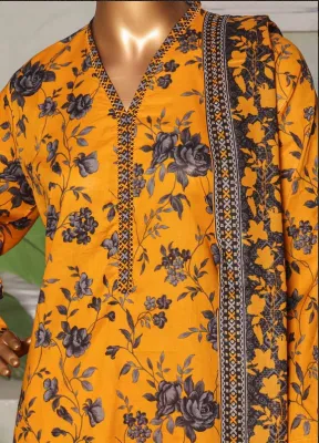 3 Piece Orange Color Printed Lawn Stitched Suit with Lawn Dupatta and Printed Trouser.