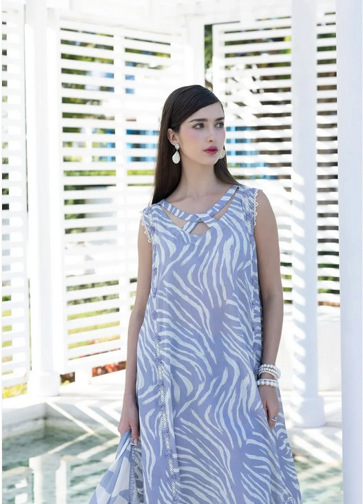 The suit includes a printed lawn shirt with matching sleeves and back, paired with a soft voile dupatta and a cambric trouser. The colors are well balanced and easy to style, allowing you to create a neat and graceful look. Whether worn at home, for daytime gatherings, or casual events, this outfit offers both comfort and simplicity.