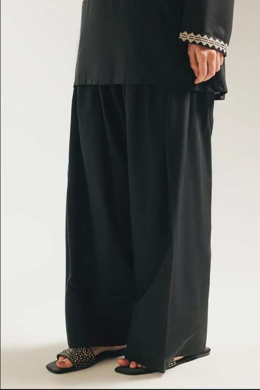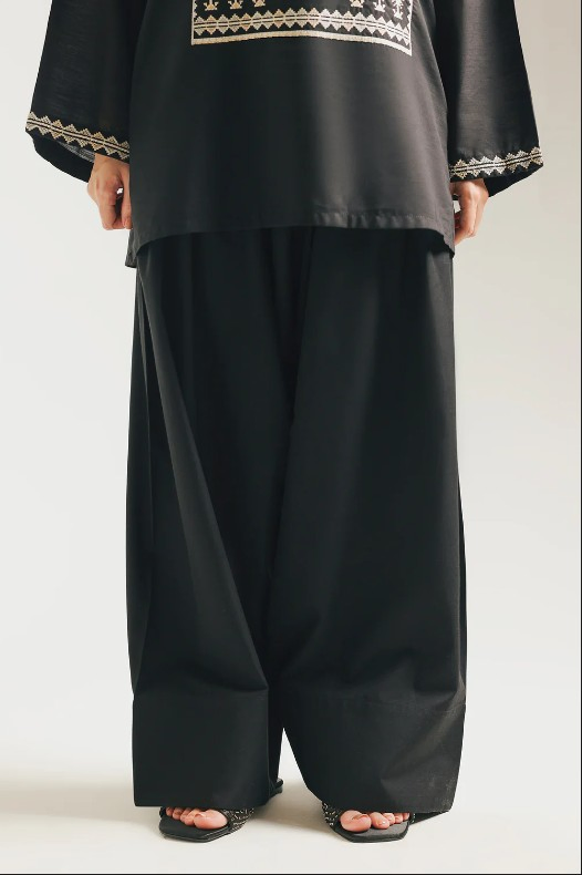 This classic shalwar is a timeless piece that promises effortless grace. Crafted from a soft cambric fabric, its wide, flowing silhouette drapes beautifully, creating a comfortable and elegant look. The subtle pleating adds to its fluid movement, making it a perfect foundation for any traditional ensemble.