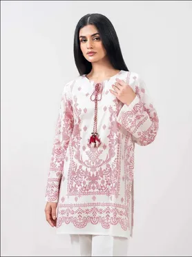 Round neck printed kurti with dori tassel detail