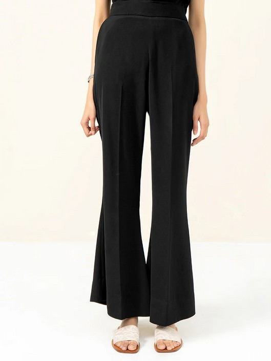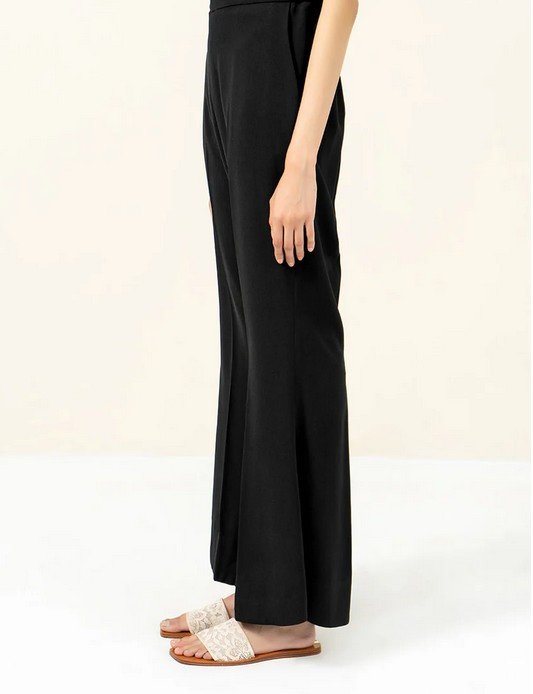 These versatile bootcut pants made in soft crepe fabric with a flared hem feature a semi elasticated waist band, side pockets, side zipper opening and hook & eye closure.
