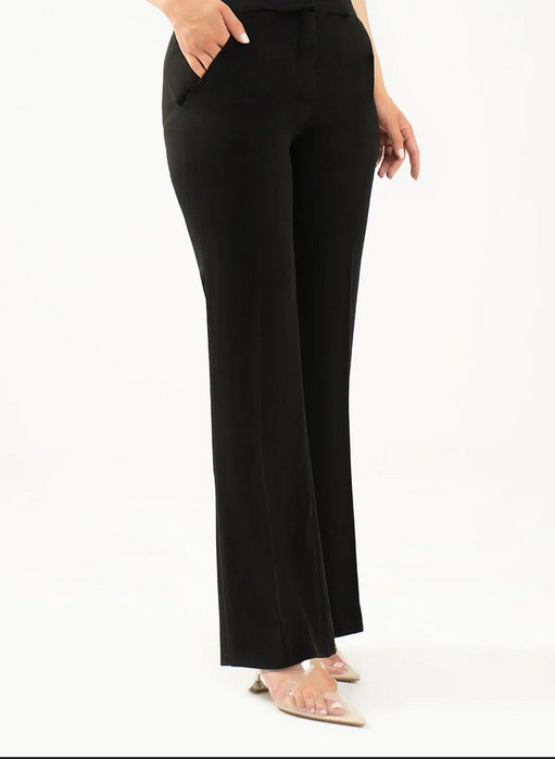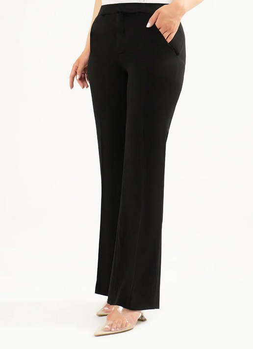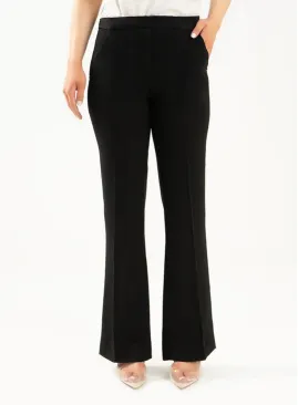 These bootcut pants made in soft crepe fabric features an adjustable flexi waist band, front zip-closure and side-pockets.
