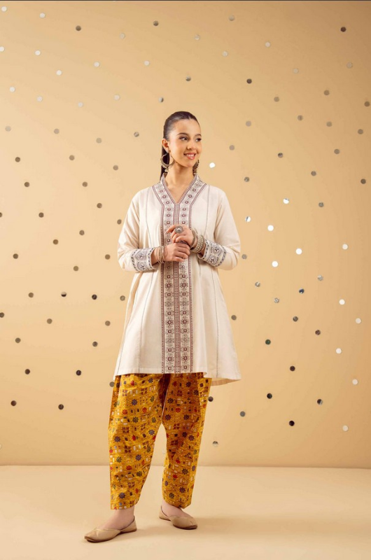 Printed Embroidered Shirt With Shalwar