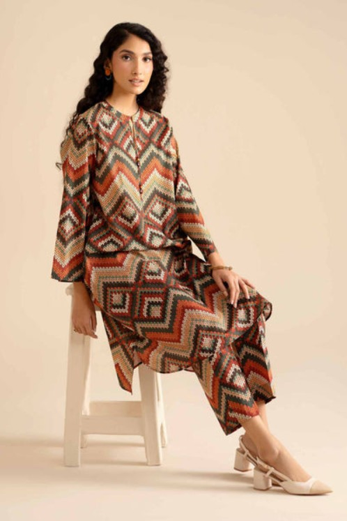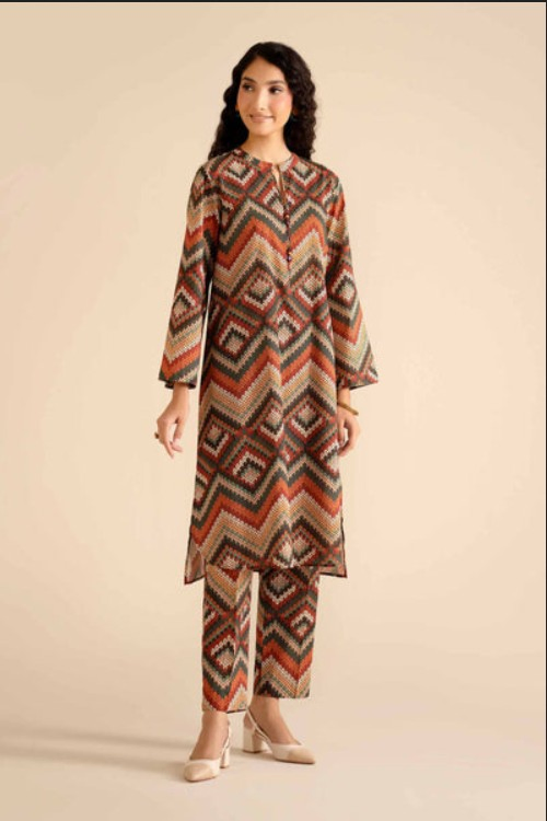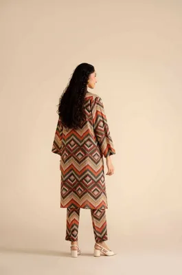 Upgrade your winter wardrobe with this printed two-piece suit from the latest Pret Winter Collection, styled for timeless charm.