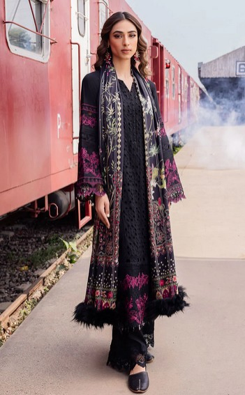 Nureh NS-96 Maya Embroidered Linen Collection Original brand suit fabric and photography lite diffrance in actual print.
