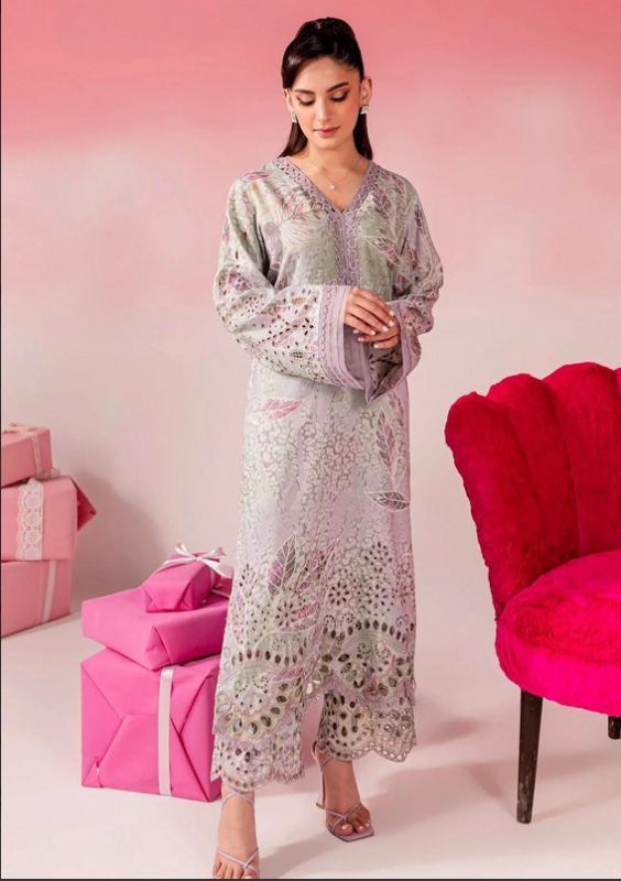 - Printed And Embroidered Chickenkari Lawn Zari Shirt