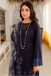 Embroidered Lawn Shirt Paired With Embroidered Chiffon Duppatta And Dyed Cotton Trouser