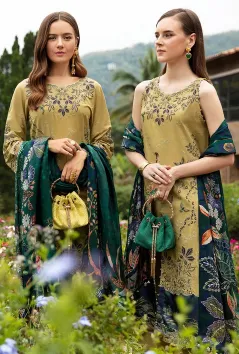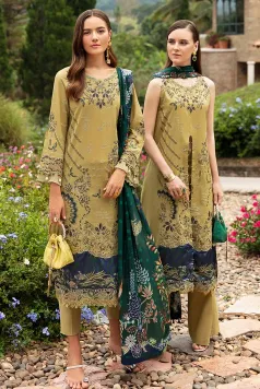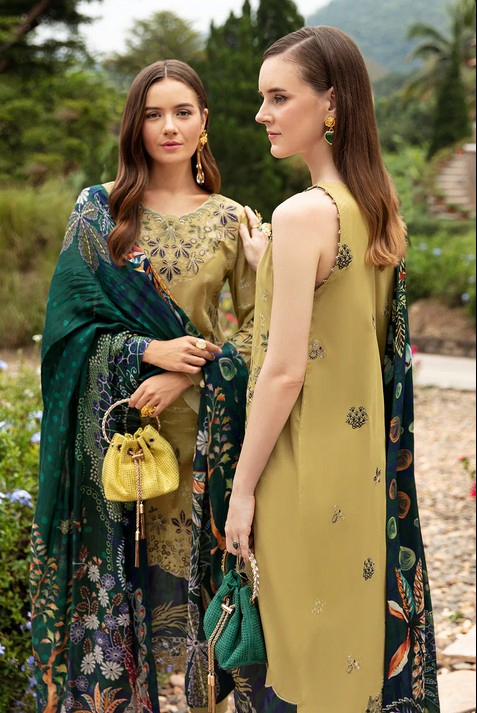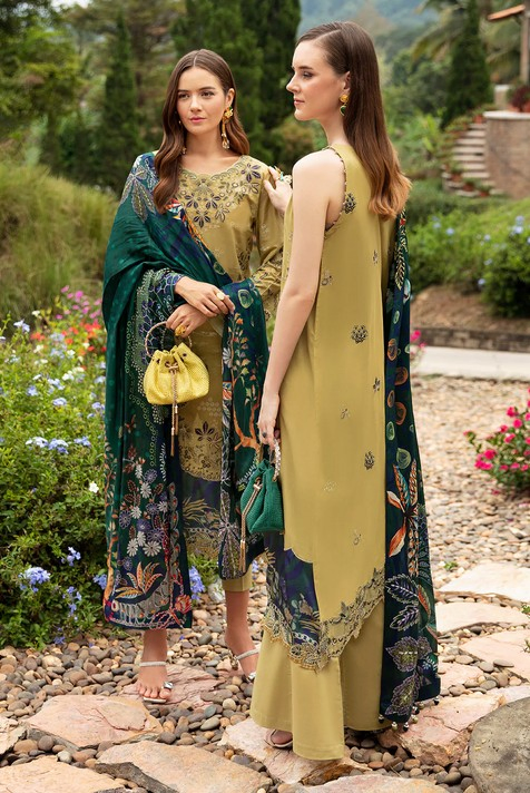 RAMSHA - Andaaz Luxury Lawn – OLIVE GREEN UNSTITCHED