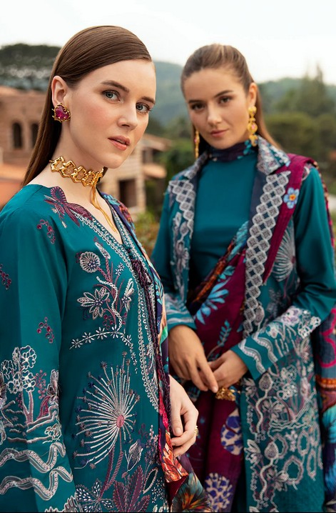 RAMSHA - Andaaz Luxury Lawn – SEA BLUE UNSTITCHED