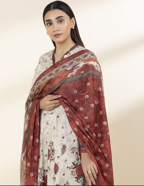 DupattaPrinted Voile Dupatta 2.50mFabric: VoileColour: Off White & Red