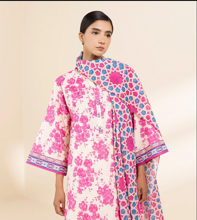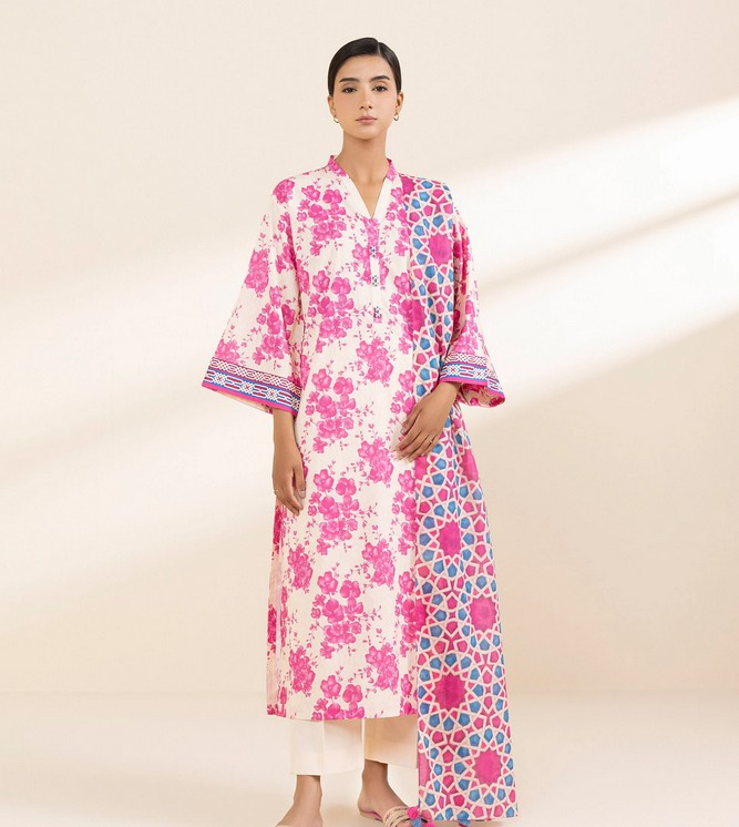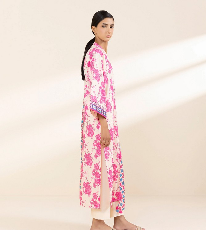 ShirtPrinted Lawn Shirt 3.00mFabric: LawnColour: Off White & Pink