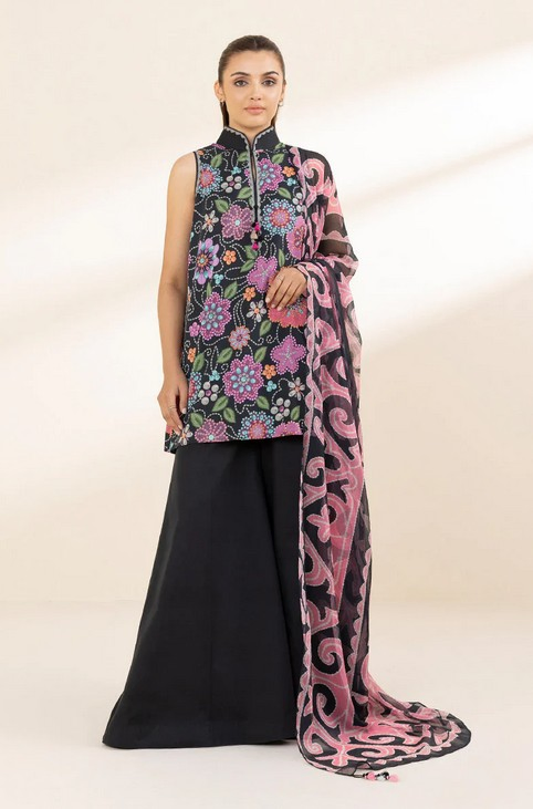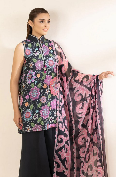 DupattaPrinted Blended Chiffon Dupatta 2.50mFabric: Blended ChiffonColour: Pink and Black