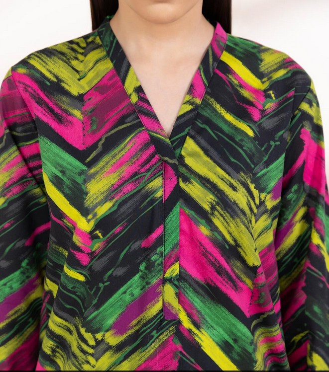 Printed Front, Printed Back, Y-Neck Neckline, Full Sleeves