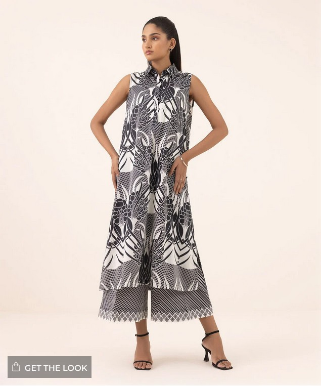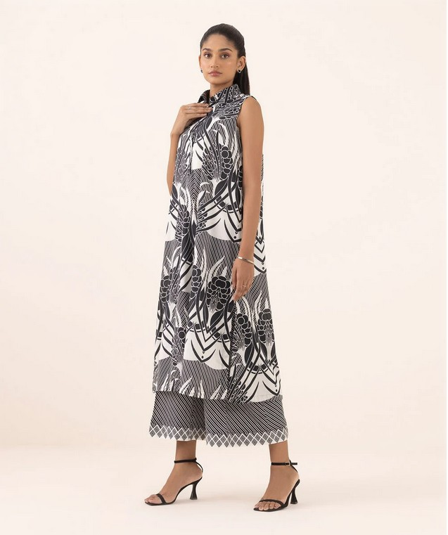Printed Front Panel, Printed Back Panel, Collar With Placket Neckline, Attachable Sleeves, Long Length