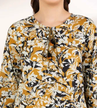 Printed With Tassels And Lace Finish Front, Printed With Lace Finish Back, Round With A Slit Neckline, Full Sleeves