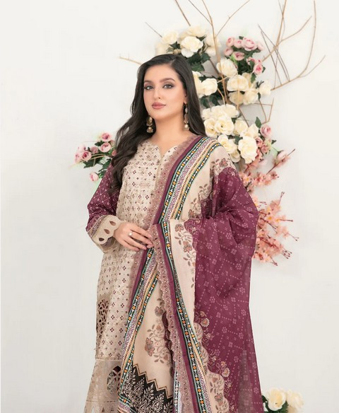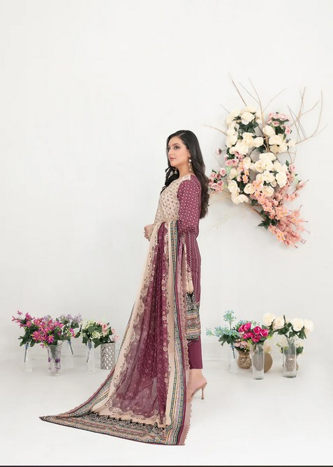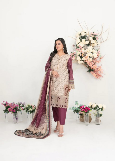 3 Piece Stitched Collection By Tawakkal Fabrics, Attractive & Elegant Lawn Collection comes with: