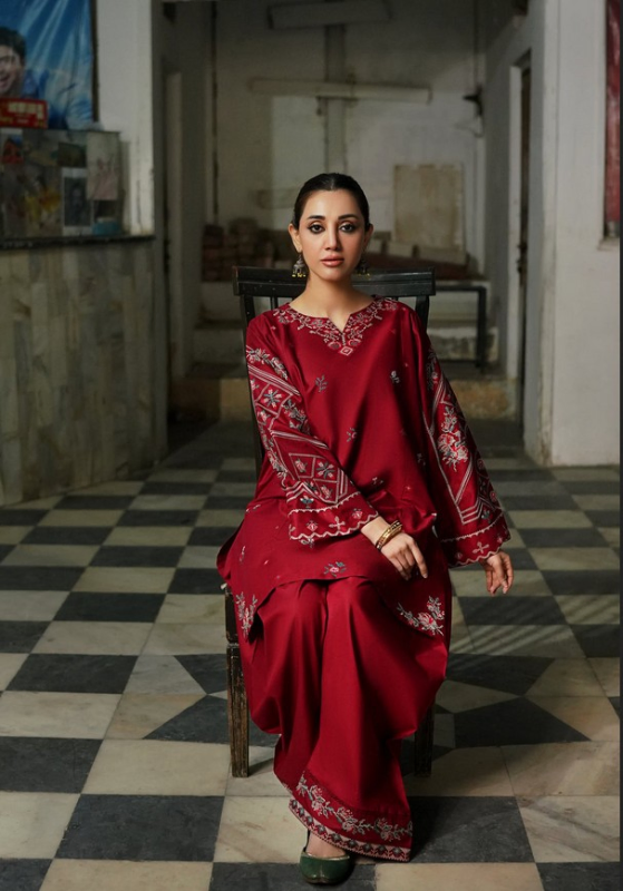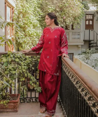 This exquisite Women's Kurta Set features a tunic kurta top in rich walnut brown twill cambric fabric and a straight trouser bottom in mocha brown. The embroidered work technique adds intricate detailing to this 2-piece ensemble, perfect for daily wear. Elevate your wardrobe with this chic set. Product.