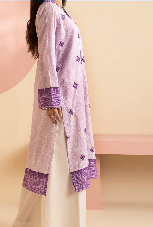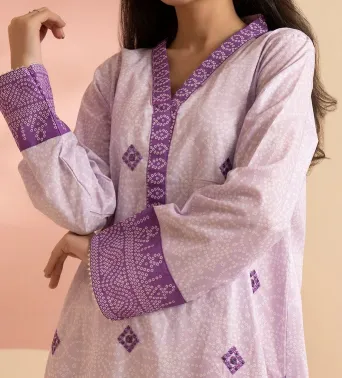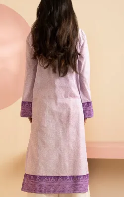 This lilac embroidered kurta is crafted from lightweight lawn fabric, offering breathable comfort ideal for warm weather. Designed for women, its intricate embroidery adds a refined touch to a classic pret style, making it suitable for both casual and semi-formal occasions. The kurta combines elegance with ease, ensuring a polished look without compromising on comfort.