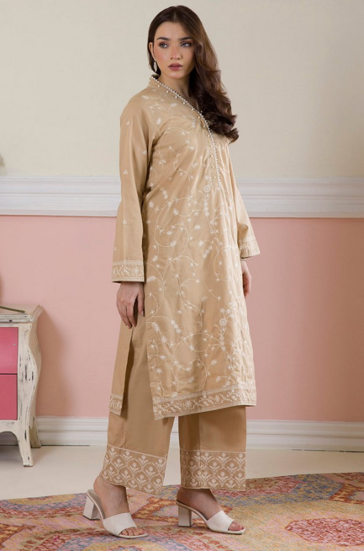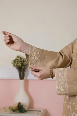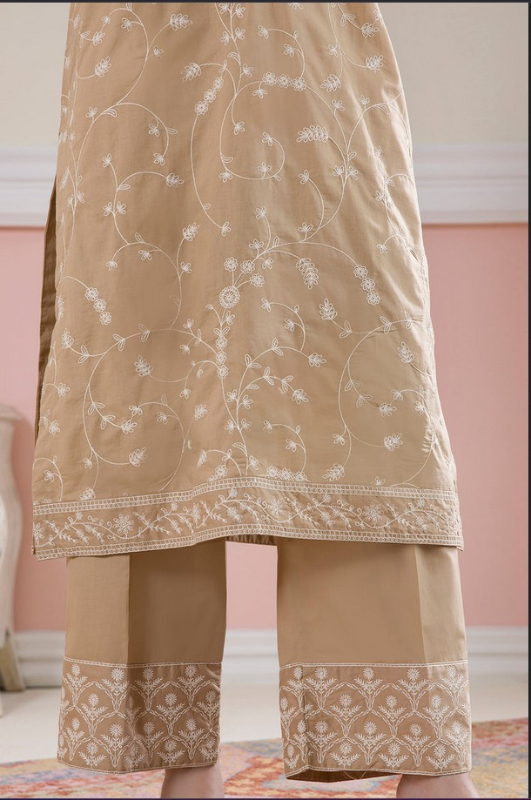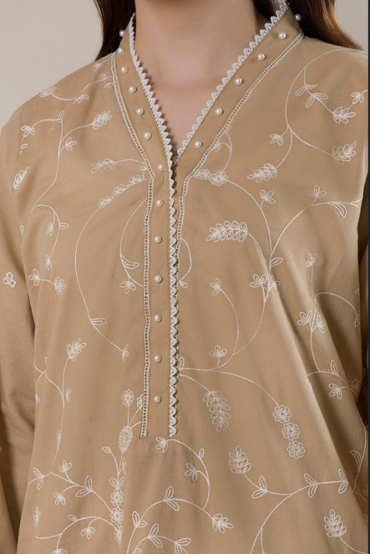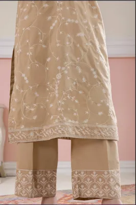 Elevate your wardrobe with this expertly crafted embroidered kurta and trouser set in soft cambric fabric. Designed for women who appreciate refined style, the sand-colored ensemble offers both comfort and elegance, perfect for everyday pret wear. The delicate embroidery adds subtle sophistication, making it suitable for casual and semi-formal occasions alike.
